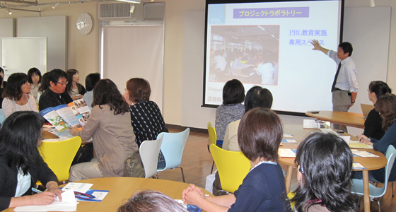 平成22年10月14日、福岡県立筑前高等学校から84名のPTAの皆さんが来校しました。どなたも真剣な表情で学科説明に耳を傾け、初めて聞くPBLについて興味を持たれたようでした。通常の講義や実習では得られない実践的な力を身につける画期的な取り組みに、熱心にメモをとられる姿も見られました。