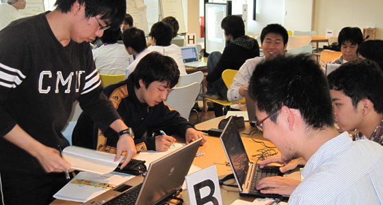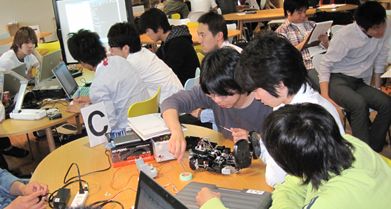 平成23年度前期総合システム工学PBLの授業がスタートしました。3年生にとってはPBL科目の総決算となるプロジェクト活動です。提示された9つのテーマごとに6名でチームを編成し、実施計画の立案からプロジェクトの実行まで全て自分たちで行います。初日から活発な意見交換が行われ、一年間を通してのグループ活動について意欲的な姿勢が表れていました。