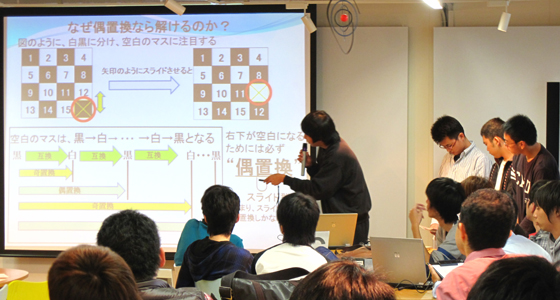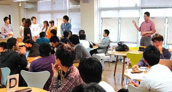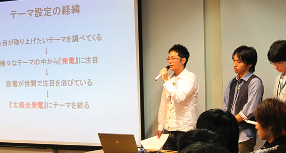 平成23年10月11日、総合システム工学PBLグループ活動進捗報告会が行われました。当日は先生方やティーチングアシスタントの学生も見守る中、グループ毎に取り組んできたテーマの進捗状況について、メンバー全員による発表が行われました。活動が順調に進んでいるグループの他に課題を発見し見直しを検討するグループは、先生方からアドバイスをいただくなど有意義な会となり、来年1月開催の成果発表会に向け、各グループともさらなるブラッシュアップを期待させる報告会でした。