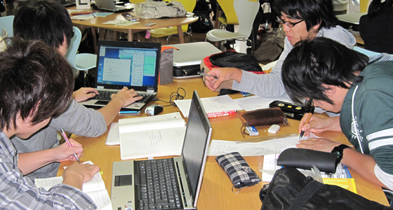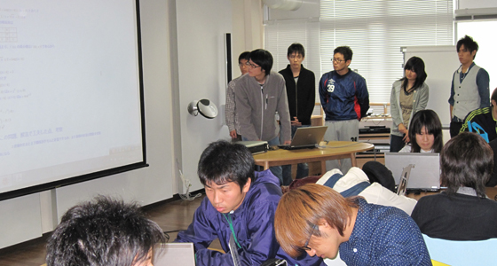 平成23年度計算数理工学PBLの授業がスタートしました。総合システム工学科2年生が履修するこのPBL科目は、全体を4期に分け、各期において設定された数学・物理の課題に対し、Mathemetica、Excel等のソフトを用いてグループ単位で解決に取り組みます。10月には第1期のまとめとして、二回に分けてグループ・個人の発表が行われました。