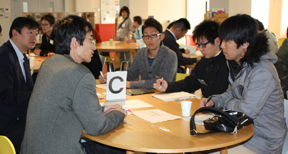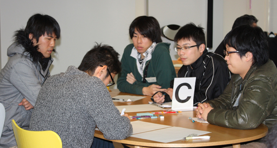 平成23年11月21日、平成23年度第10回学生と教員との懇談会が行われました。当日は教員、学生、学科などの垣根をこえ、それぞれの立場から工学部の授業の面白さや難しさについて、活発なグループディスカッションが行われました。ディスカッション後の各グループからの報告では、異なる立場からの様々な視点での問題点の提案があり、新たな発見が多数ある有意義な懇談会となりました。