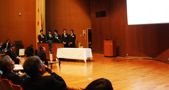平成24年1月24日、戸畑キャンパス内の記念講堂にて平成23年度PBLプロジェクト成果発表会が行われました。当日は1~3年生の13チームが、約170名の観客を前に、それぞれが取り組んできたプロジェクトについてのプレゼンテーションを行い、発表後には審査員との活発な質疑応答が繰り広げられました。企業審査員も多く参加した今回の発表会は、企業の視点や考え方を身近に感じることのできる大変有意義な場となりました。