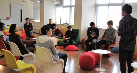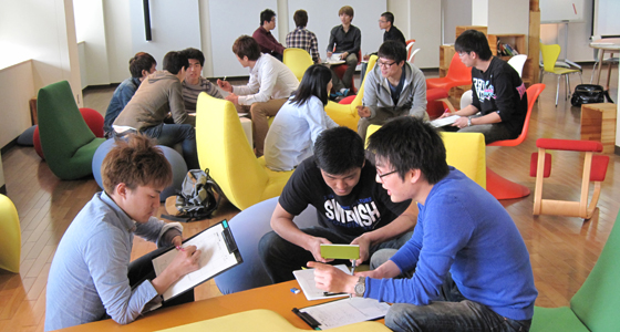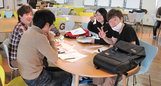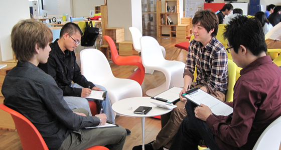 平成24年度前期人間科学・日本事情Aの授業がスタートしました。中国・韓国・台湾・ラオス・マレーシアからの留学生を交え、グループでディスカッションを行いました。また、個人発表では同じ東洋圏でも名前に用いる漢字の意味や由来が異なるなど、自国との違いや共通点などを挙げながら、熱心に意見交換が行われました。