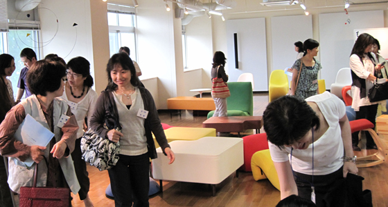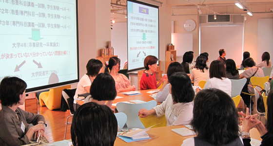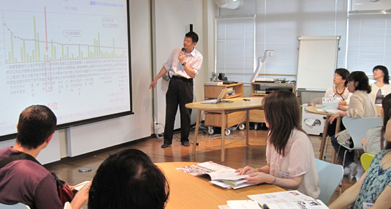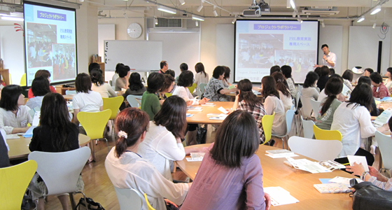 平成24年7月2日、福岡県立筑紫高等学校からPTAの皆様64名がプロジェクトラボラトリを訪れ、中尾PBL教育推進室長より、最近の就職事情に関するデータも交えながら、PBL教育プログラムの必要性について説明を受けました。高校3年生のご父兄ということもあり、進学や就職についての情報をどなたも熱心に聞き入っておられました。また、従来の講義室とは異なるプロジェクトラボラトリに驚かれた様子で、特色のあるPBL教育プログラムの内容についても、高い関心を示されていました。