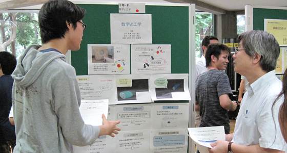 平成24年7月19日、総合システム工学科PBL成果発表会が行われました。ラボラトリで各チームとも入念にリハーサルを行った後、第一部は記念講堂でのショートプレゼンテーション、第二部は鳳龍会館にてポスタープレゼンテーションを行いました。1年生から3年生まで合同での発表形式は、昨年に引き続き二度目となります。また、今回、ポスタープレゼンテーションでは来場者にシールを配布し、「プレゼン」「工夫」「結果」の評価項目について良かったチームにシールを貼っていただき、総合点を競う審査形式を取り入れました。どのチームも活発に取組み内容についてのプレゼンを行った結果、1位から3位のチームに前田工学部長から表彰状が手渡されました。