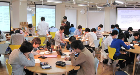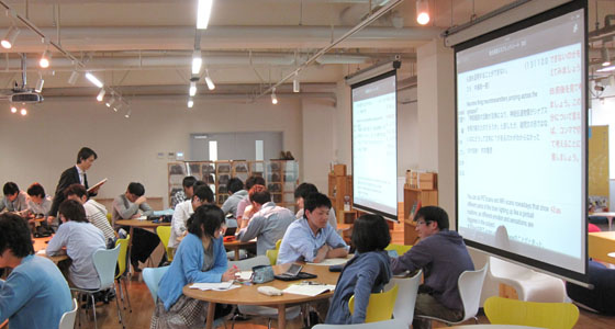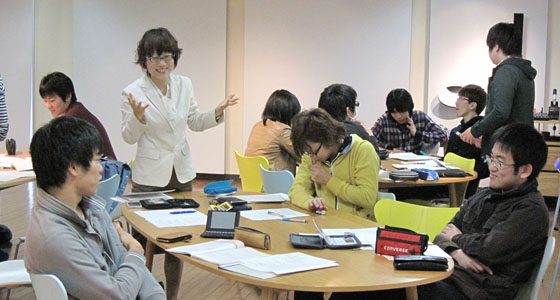 平成25年度前期人間科学・総合英語の授業がスタートしました。総合英語Bでは、英語による設問を聞き、各自が回答していく形式で授業が進められました。また、総合英語Cではグループに分かれ、英語によるスピーチの手法についてフリップチャートを用いてディスカッションを行い、グループごとに発表を行いました。