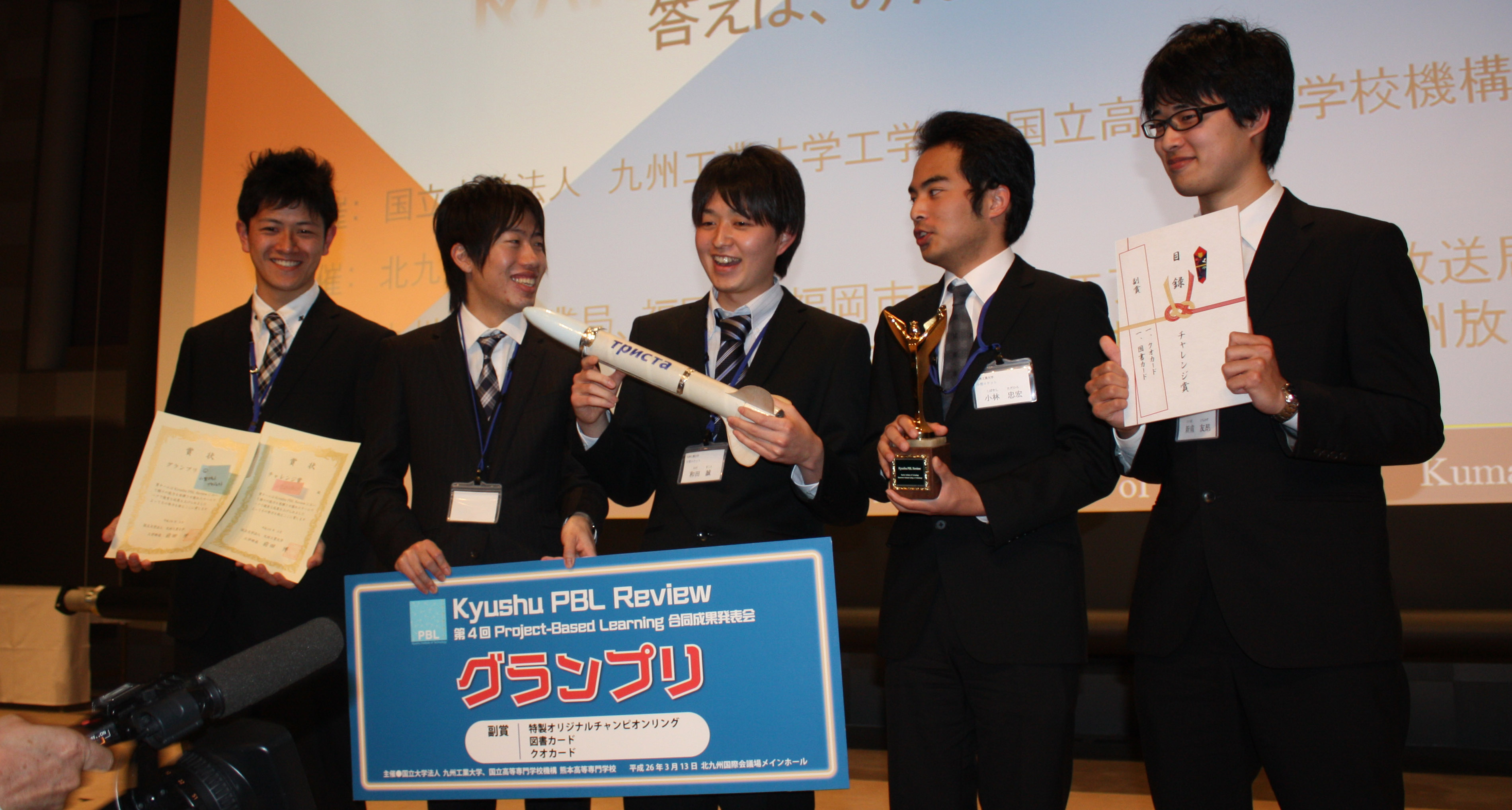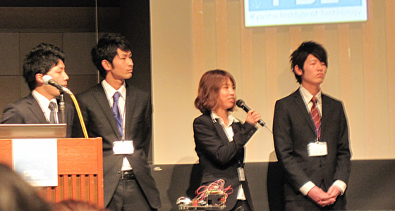 Kyushu PBL Review~PBL合同成果発表会~を行いました。北九州国際会議場にて、九州工業大学各学科代表6チームと熊本高等専門学校から選抜された6チーム全12チームでPBLプロジェクトの成果を発表しました。経済産業省、他大学、企業から参加いただいた16名の審査員により「プレゼンテーション力」「プロジェクト達成度」「工夫力」について採点が行われました。また、Facebookからも審査に参加するシステムを採用し、熱のこもったプレゼンが披露されました。