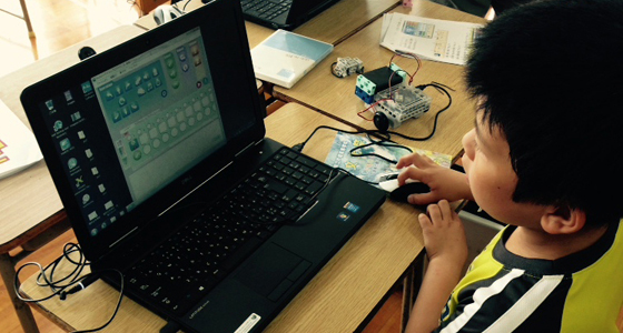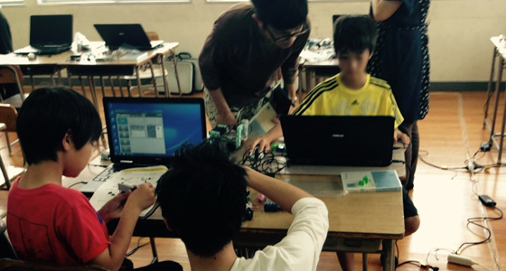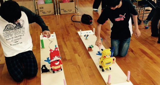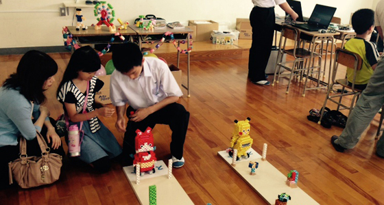 平成27年5月30日、福岡県立戸畑高等学校文化祭にて、同校化学部と協働で取り組んでいたPBLプロジェクト「かんたん!ロボット教室」を開催しました。2014年から本学中尾基教授の研究室と協働で、プログラミングの知識がない小学生でもブロックでロボットを制作し、簡単に操作できる体験型の展示に取り組んできました。このブロックロボット製作は、今年度総合システム工学科1年生の必須科目「入門PBL」において、工学を学ぶ上でベースとなるものづくりに対する動機付け、また最近顕著なプログラミングに対する苦手意識を払拭する目的で導入されています。初心者から上級者まで対応できる仕組みとなっており、今回の戸畑高校文化祭では、保護者も含め熱心に取り組む姿や、実際のロボット操作に歓声を上げながら楽しむ姿が数多く見受けられました。