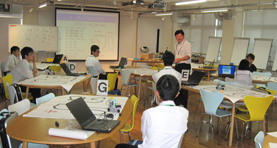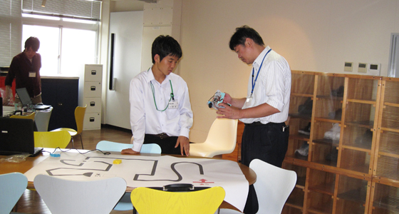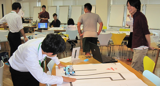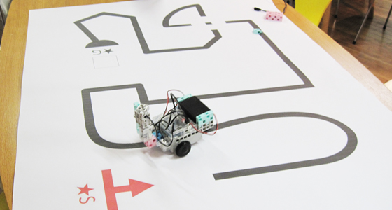 平成27年9月14日、山口県立徳山高等学校SSHの体験学習が本学で実施され、情報工学分野に2年生9名の皆さんが参加しました。講義は、今年度から総合システム工学科1年生の必須科目「入門PBL」に導入された演習「ブロックロボット」の制作と操作を体験する内容で、ノートPCを用いて簡単なプログラミングを行った後、各自製作したロボットカーでライントレースでのタイムトライアルに挑戦しました。限られた時間での製作となりましたが、TAのアドバイスを受けながら熱心に取り組まれ、レース結果は僅差となる白熱したものとなりました。