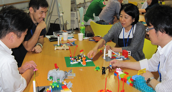 平成27年9月6日、練成会-LSP修了認定ファシリテーター研修会-がありました。LSPはレゴ®ブロックを使って全員参加、チームの叡智を完全に出し切る会議を実現するためのユニークなメソッドです。このLSPのファシリテーションをすることのできるLSP修了認定ファシリテーターが全国から集まり、ブラッシュアップを目的とした研修会「練成会」を九州で初めて本学のプロジェクトラボラトリにて開催することとなりました。中尾PBL教育推進室長も含め22名の参加者はブロックを使いながらグループ討議、意思決定などを行い、また各自がこれまで実施した事例から問題点を共有するなど熱のこもったワークショップが展開されました。