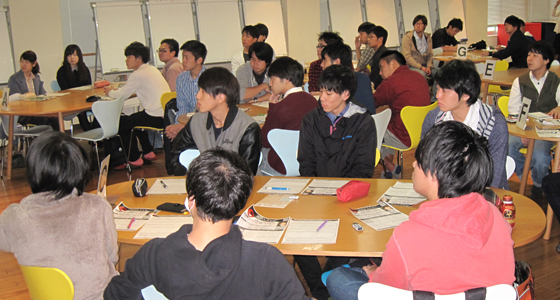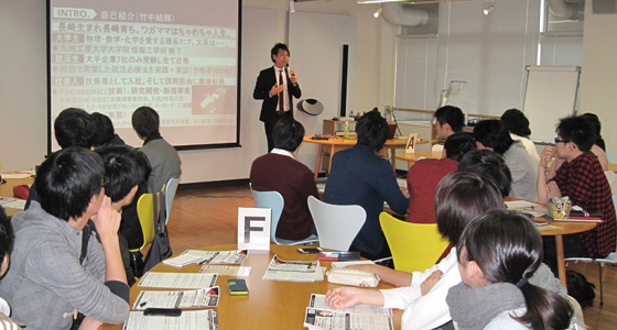 平成27年11月9日、本学情報工学部OBである竹中結輝氏による就職活動セミナー「就活LIVE ZERO」がありました。本セミナーは学生時代の就職活動経験と社会人として採用業務を担当している竹中氏が、自らの体験に基づく独自の理論で「在学中からキャリアを意識し行動する」重要性を学生に伝えるために開催しているものです。
