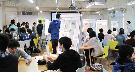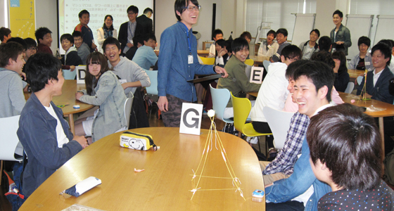 平成28年度総合システム工学入門PBLの授業が始まりました。幅広い工学の知識に加え、社会が求める人材に必要なコミュニケーション能力やプレゼンテーション能力などの基本スキルを身につけるため、グループ学習によるPBLを通して総合力を育てる必須科目です。アイスブレークのマシュマロチャレンジの他、新聞をコミュニケーションツールとして使用するグループ演習など、通常の講義とは異なる全員参加型のカリキュラムにより、合意形成のための活発な意見交換が行われる様子が見られました。