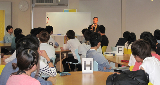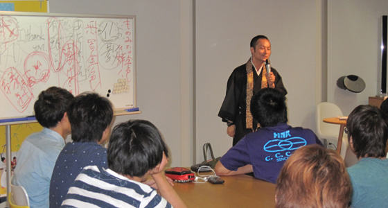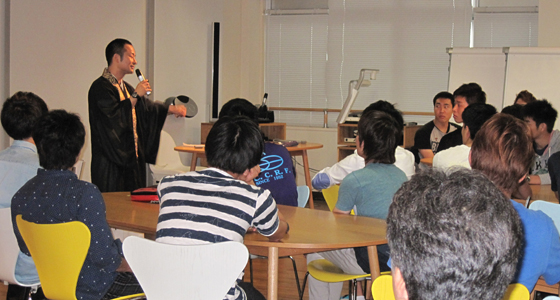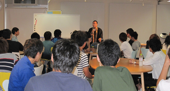 平成28年度総合システム工学入門PBL授業の一環として、福岡市にある伝照寺住職、轟勇二様による特別講演を行いました。普段聞く機会の少ない法話の中に、自己を省みる心の有り様や、個人の生き方・考え方に大きく関わってくる「気付き」の重要性など、これまでと違う切り口での内容に受講生は熱心に聞き入っていました。今回の講演は、自分自身と向き合いながら大学での学びを深め、進むべき路を模索する意味を改めて考える、貴重な体験となりました。
