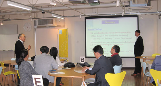 平成28年12月14日、PSITEソリューション3地区支部の代表者および主要メンバーで、フィリピン国内大学の学部長クラスの方(7名)が来学され、プロジェクトラボラトリを視察されました。中尾PBL教育推進室長より、PBL教育プログラムの概要やプロジェクトラボラトリで行われている授業内容等について、説明を受けながら、熱心に質問されていました。PBL教育プログラムに高い関心を示されていました。