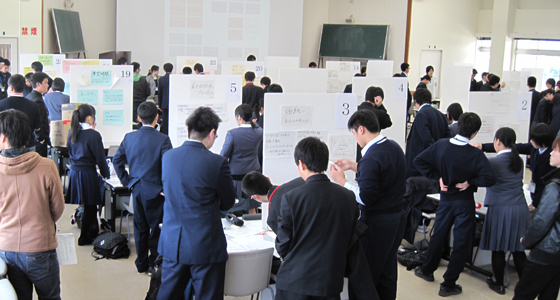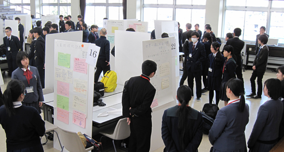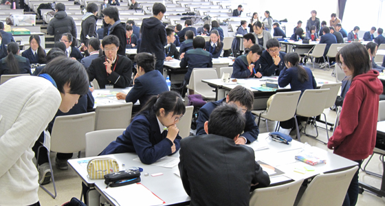 平成29年3月12日、東海大学熊本キャンパスで第4回 サイエンスセミナー in くまもとが行われました。熊本県内の科学に興味を持つ生徒同士の学校を超えた交流を深め、また生徒の「主体性を持って多様な人々と協働する態度」や「知識・技能を活用し、課題発見・解決するための思考力や判断力、表現力」などを伸ばすことを目的に開催されるものです。今回は8校から100名近い生徒が参加し、事前に提示された6つのテーマについて、3~6名のグループに分かれディスカッションを行いました。中には屋外で実証実験を行いデータをとるグループもあり、課題に対する様々な解決策や見解が披露されました。本学からは、PBL科目でTA経験のある6名の学生がサポートにあたり、グループ活動が円滑に行われるようアドバイスや指摘を行いました。最終発表では各ブロック毎にメンバーを入れ替えながらポスターツアーを行い、他のグループの発表内容について活発な質疑応答が行われました。毎年ブラッシュアップされるこのセミナーについて、参加された先生方から、高い評価と期待が寄せられていました。