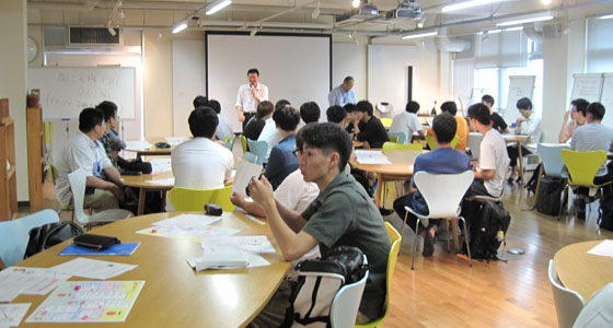 平成29年度総合システム工学入門PBL授業の一環として、すまいるすごろくコーチ・トレーナーの斉藤隆様によるコーチング体験授業が行われました。「人とのかかわりの幅を拡げる~コーチング的コミュニケーション~」という演題で実施しました。コーチングの説明の後、2人1組(クライアントとコーチ)になって「達成したい目標や夢、手に入れたいモノ・コト」について考え、コマを進めていきました。コーチング的コミュニケーションについて考える貴重な時間となり、活気溢れる授業となりました。