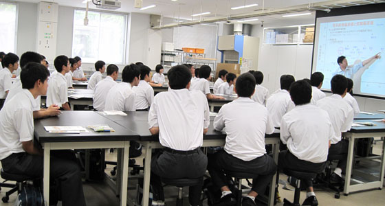 平成29年7月6日、福岡市立福岡西陵高等学校の模擬講義がサイエンス工房で行われました。2年生40名が参加しました。中尾PBL教育推進室長より、大学の説明が行われた後「マシュマロチャレンジ」でのアイスブレイクを行いました。乾麺のパスタ、テープ、ひも、マシュマロを使って、自立可能なタワーを立て、最も高いタワーを作ったチームの優勝となるゲームです。このゲームによって、チームビルディングでの課題や気づきを得ることができます。試行錯誤しながら熱心に取り組む姿が見られました。