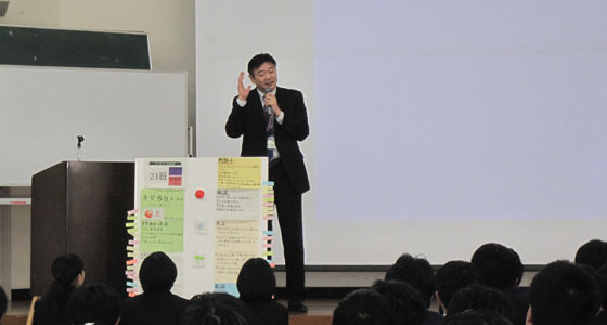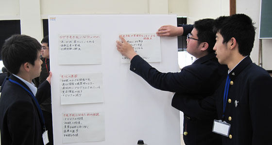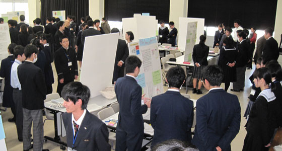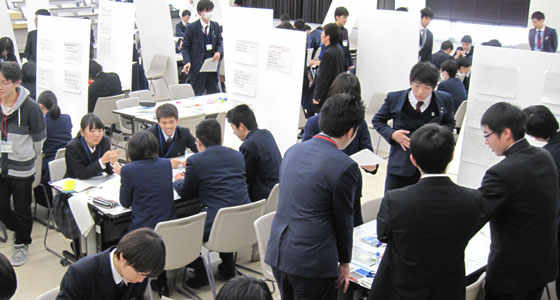 平成30年3月11日、東海大学熊本キャンパスにて開催された第5回サイエンスセミナーinくまもとに中尾PBL教育推進室長、PBL教育推進室スタッフとしてTAの学生8名が参加しました。本セミナーは熊本県内のSSH指定校などから科学・生物関連の部活動をしている生徒が集い、事前に提示された6つのテーマについてグループディスカッションを行うものです。当日は129名の生徒の皆さんが参加し、学校の枠を超えて活発に意見交換が行われました。全25チームが「解のないテーマ」について情報を出し合い、仮説を立て、自分たちの見解をまとめたKP(紙芝居プレゼンテーション)を実施しました。ポスターツアー形式で他チームの解説を聞いた後、相互評価により決定した優秀チームが登壇し、発表を行いました。他校の生徒同士で意見交換を行う貴重な体験の場として、年々参加者が増加している本セミナーは、熊本県内の教育現場での認知度も高く、参加された先生方の期待も大きなものとなっています。