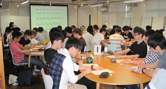 電気電子工学科1年生の物理学Ⅰでの1コマとして、岸 智子様による、グラフィックレコーディング特別講義が行われました。「図や絵も使って読み返したくなるノートをとろう」という演題で実施しました。まず、アイコンを書く練習を行い、その後、5分間のスピーチを聞いて、図や絵などで内容を記録する演習を行いました。学生にとって、興味深い内容で、今後のノートの取り方を考えるとても有益な講義となりました。