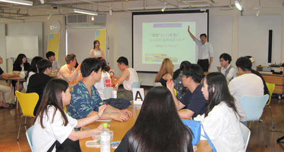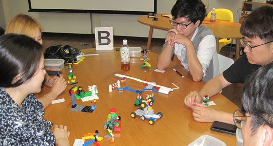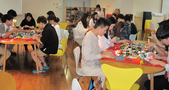 平成30年8月10日、韓国・東義大学校の日本での研修の一環として、レゴ®シリアスプレイ®によるワークショップをプロジェクトラボラトリで実施しました。学生20名が参加しました。LSPは、レゴ®ブロックを活用したユニークな問題解決手法、コミュニケーション手法です。前半は「自信を持って言える私の強み」「この研修で習得したもの」後半は「私達が感じている現代社会」をレゴブロックを使って表現しました。最後は、前半の個人モデル2作品をチームモデル「私達が感じている現代社会」に繋ぎました。3時間にわたる熱の入ったワークショップが行われ、とても有意義な研修となりました。