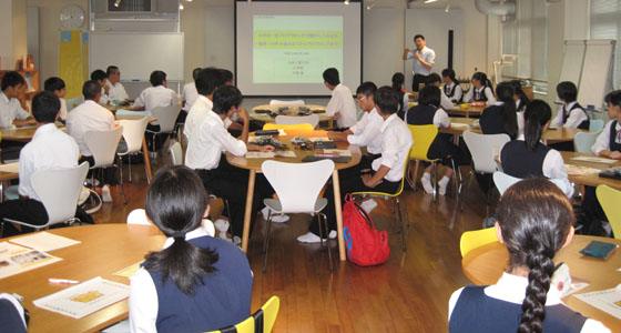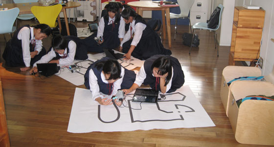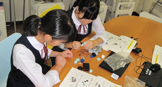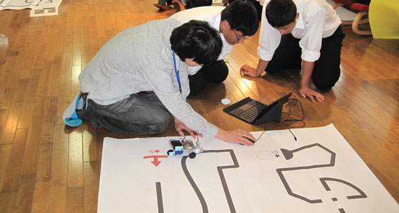 平成30年9月14日、山口県立萩高等学校の模擬講義がプロジェクトラボラトリで行われました。1年生40名が参加しました。中尾PBL教育推進室長より、大学説明が行われた後、二人一組になり、ブロックロボット製作を行いました。PCを用いてプログラミングを行った後、ロボットカーを走行させました。基本動作に加えて色々な動きをプラスして楽しむ姿が見られました。最後はライントレース走行にもチャレンジしました。試行錯誤しながらプログラミングを改良する等、真剣に取り組む姿が見られ、2時間にわたる有意義な講義となりました。