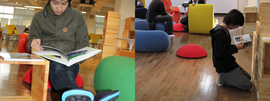 プロジェクトラボラトリでは、家具の移動は自由です。お気に入りの椅子があれば、それを自分のテーブルのところに動かす。本をゆっくり読みたい場所があるなら、そこに本棚を動かす。それを他の人たちがまた別の場所に動かす・・・みなさんが空間と関わることによって、毎日変化する・・それがプロジェクトラボラトリです。